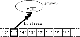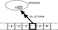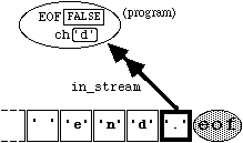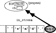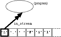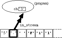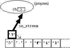 has two effects: (i) the variable "ch" is assigned the value "'5'", and (ii) the ifstream "in_stream" is re- positioned so as to be ready to input the next character in the file. Diagramatically, the new situation is: