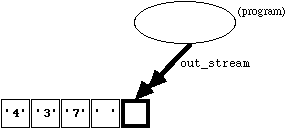 has a similar effect, but in addition the system will "clean up" by adding an "end-of-file" marker at the end of the file. Thus, if no data has been output to "Lecture_5" since "out_stream" was connected to it, we change from the situation in Figure 5.2.2 to: